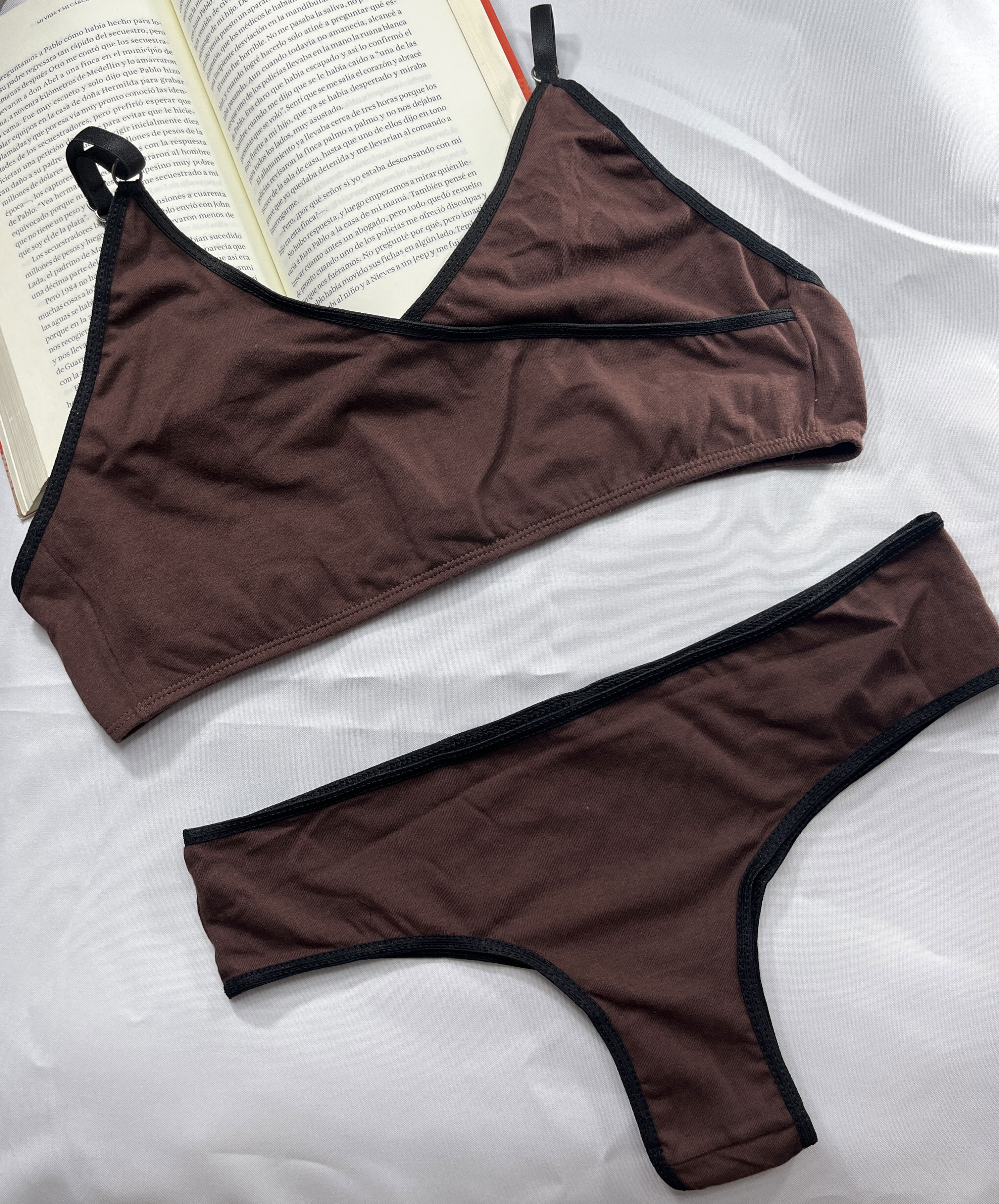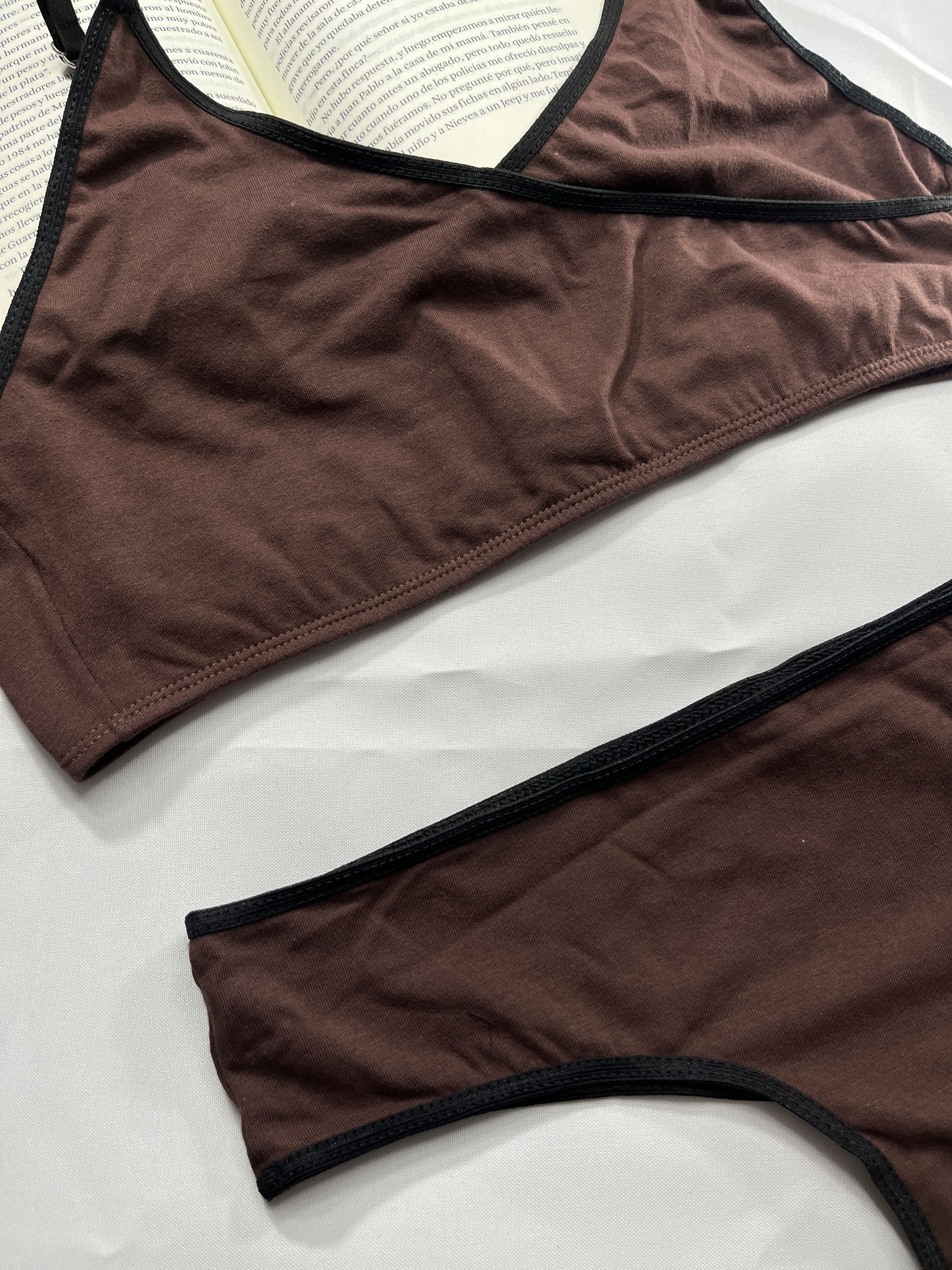 Top bralette cruzado con broche en la espalda, con culotte.